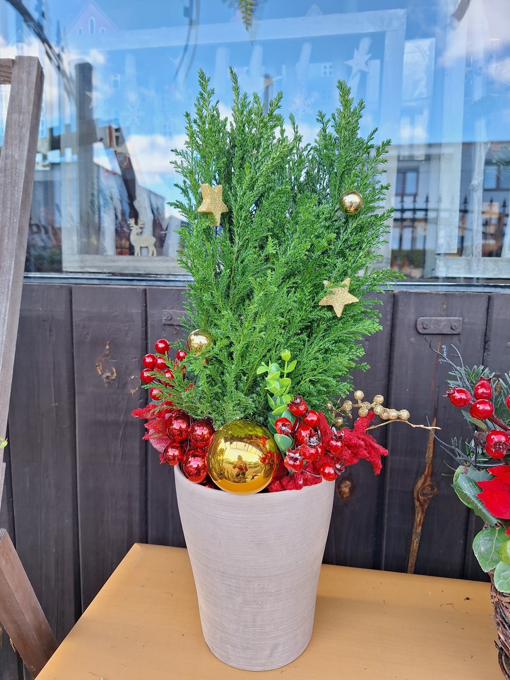 Nasze cyprysiki to gotowe, eleganckie dekoracje świąteczne, które nie wymagają dodatkowych ozdób. Każde drzewko zostało starannie przystrojone bombkami, wstążkami oraz naturalnymi dodatkami, takimi jak susz, szyszki czy gałązki.