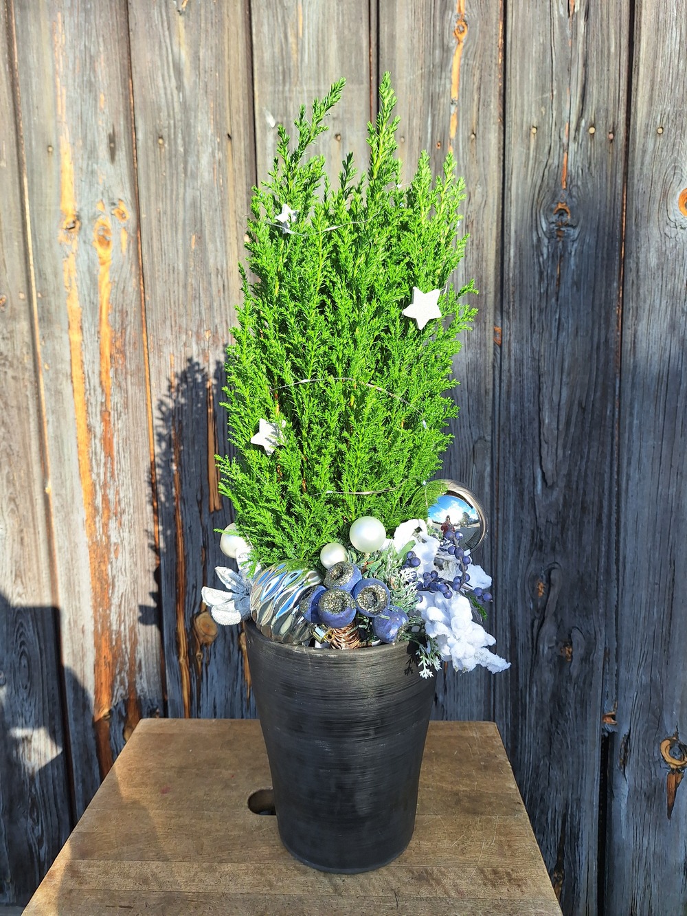 Nasze cyprysiki to gotowe, eleganckie dekoracje świąteczne, które nie wymagają dodatkowych ozdób. Każde drzewko zostało starannie przystrojone bombkami, wstążkami oraz naturalnymi dodatkami, takimi jak susz, szyszki czy gałązki.