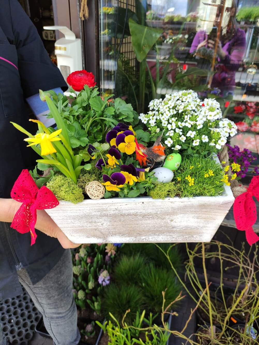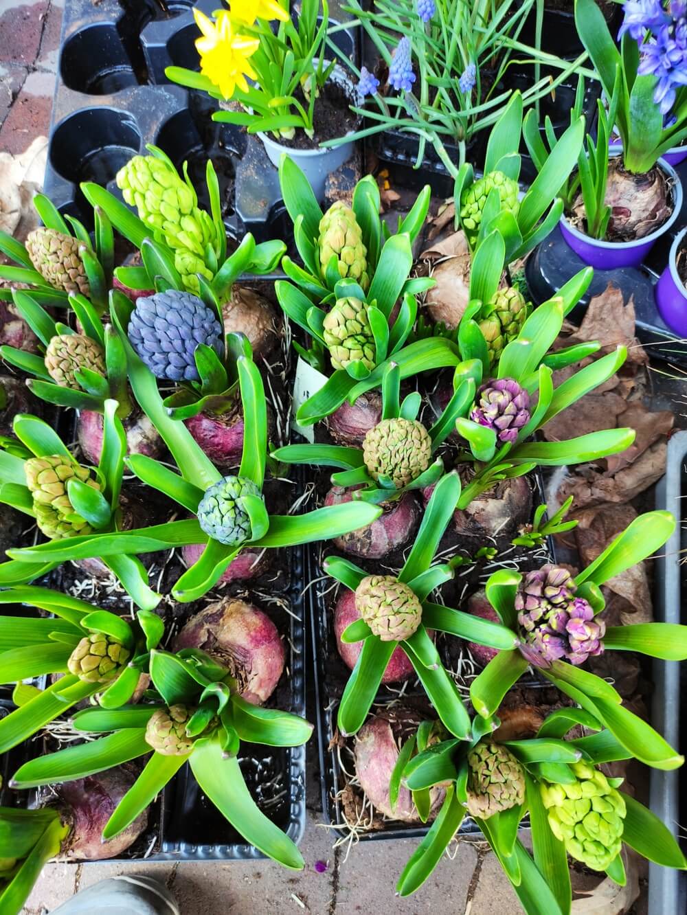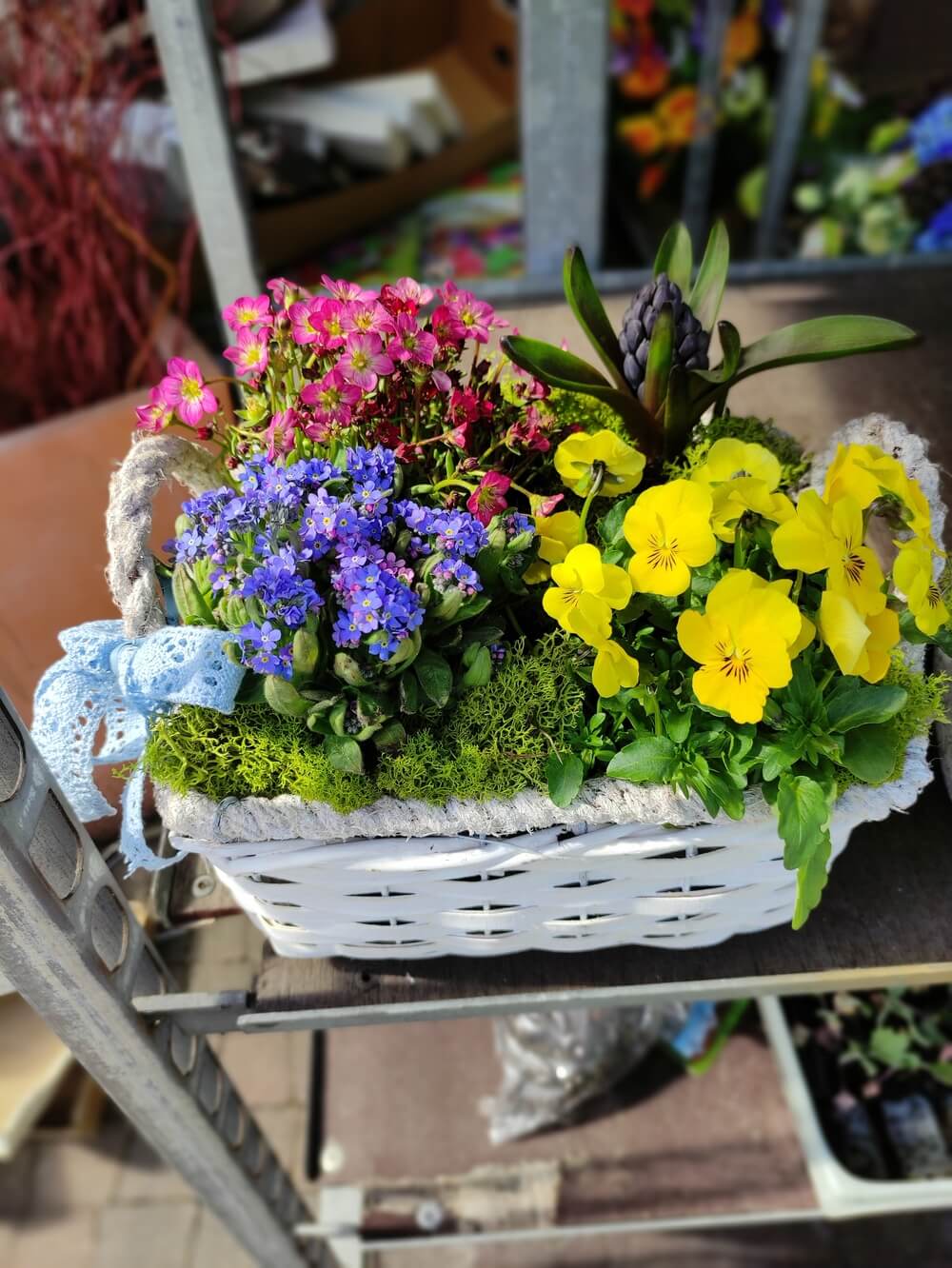 Rośliny wysyłamy zgodnie z aktualnymi warunkami atmosferycznymi – we wczesnej wiośnie w zestawach znajduje się większy udział prymuli i bratków, szafirków, hiacyntów które najlepiej znoszą chłodne temperatury.